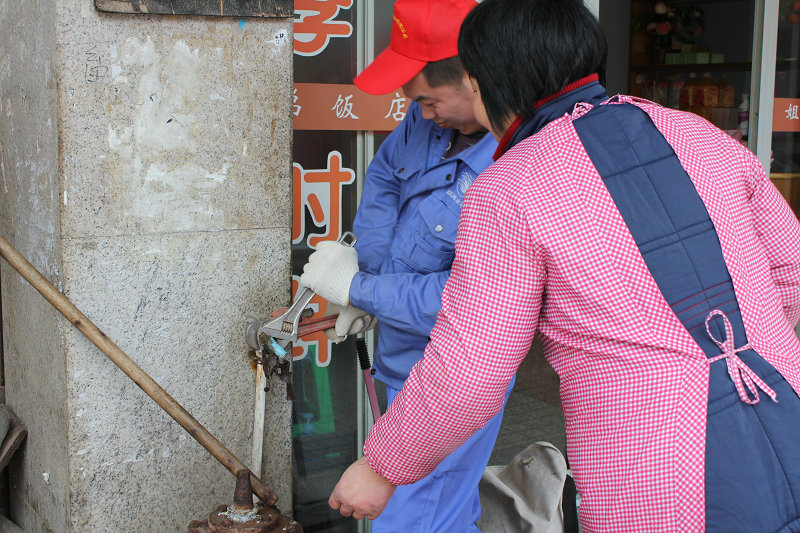 圖為集團志愿者為濱海鏡海社區居民上門免費維修水管