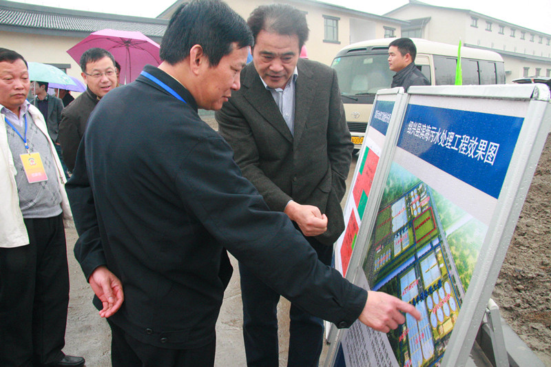上午,縣政協主席孟柏干等縣政協領導冒雨視察污水集中預處理工程,集團公司黨委書記、董事長倪阿泉等領導陪同。