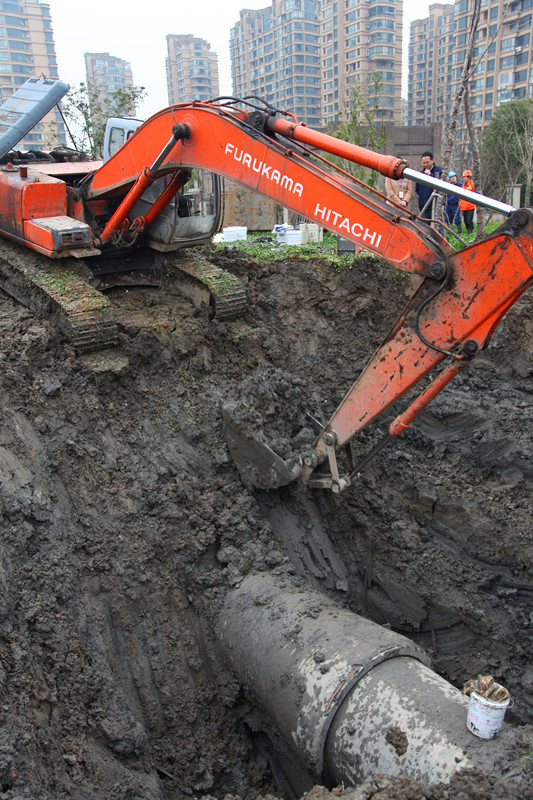 排水公司在管線巡檢人員發(fā)現(xiàn)漏點(diǎn)后,立即啟動(dòng)應(yīng)急搶修預(yù)案,立即停止對(duì)該管線的運(yùn)行,并將管道污水調(diào)度至其他管道排放,確保企業(yè)、用戶正常排水。與此同時(shí),大型機(jī)械設(shè)備和搶修物資、人員第一時(shí)間到達(dá)搶修現(xiàn)場(chǎng),僅用了8個(gè)半小時(shí)便成功修復(fù)管道。由于整個(gè)搶修過程反應(yīng)、行動(dòng)迅速,有效避免了一起重大的環(huán)境污染事故發(fā)生。