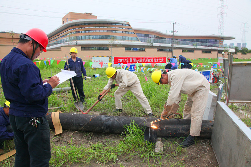 下午2時整,隨著裁判長一聲令下,技術比武活動拉開了序幕。此次比武采取現場實際操作的形式,模擬DN300mm螺旋鋼管,因地面沉降導致焊縫在鐘表位置4點到7點段開裂,要求參賽小組在規定時間內用鋼板鑲嵌裂縫后手工焊條電弧焊焊接修復。比武現場氣氛緊張激烈,參賽人員全神貫注、你追我趕,經過一個半小時的奮力比拼,各參賽小組依次完成比武內容。隨后,裁判組根據安全防護、文明施工、考核時限、焊前準備、焊縫質量等方面的評分標準對各參賽小組的比武過程和最終結果進行評分,最終產生一等獎1名、并列二等獎2名。