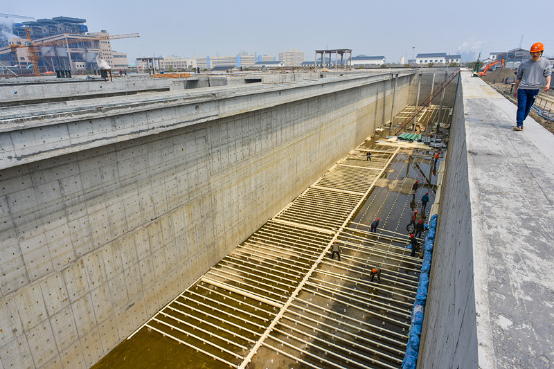 自2017年4月動工至今,投資5億元的20萬噸/日集中預處理二期工程進展順利。目前,鼓風機、吸刮泥機等關鍵設備已安裝到位,預計4 月底完成設備安裝,5月底完成調試,6月底如期投運,形成集聚區40萬噸/日集中預處理能力,屆時可全面滿足集聚區一、二、三期60家企業約35萬噸/日的污水排放需求。
