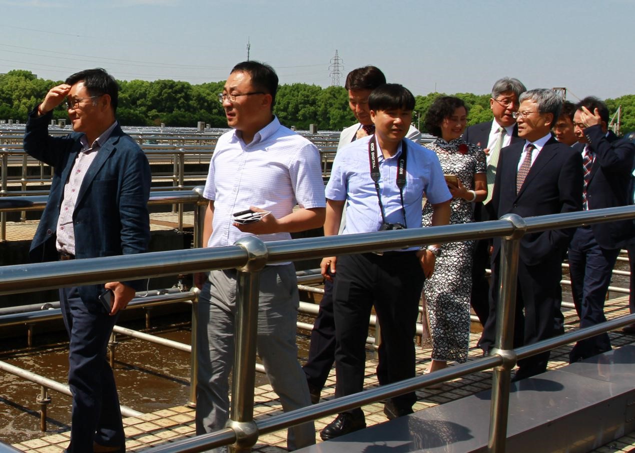 5月3日,由韓國大邱廣域市金延經(jīng)濟副市長帶隊的韓國大邱市經(jīng)濟合作訪問團到紹興水處理公司參觀訪問。在集團董事長周儉、副總經(jīng)理馮梁峰的陪同下,訪問團實地參觀了生活污水處理系統(tǒng)A/O工藝現(xiàn)場,并深入了解韓國攪拌機在該公司的應(yīng)用情況。