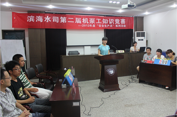 7月20日上午,濱海水司第二屆高配機(jī)泵工知識競賽在三樓會議室落下帷幕,經(jīng)過激烈的角逐,迎陽閘取水泵房代表隊(duì)獲得優(yōu)勝獎(jiǎng),送水泵房代表隊(duì)及新三江取水泵房代表隊(duì)獲得鼓勵(lì)獎(jiǎng)。