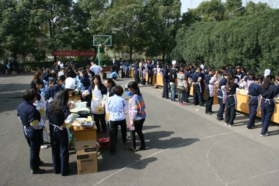 紹興水處理公司有100余名女職工,約占職工總數的三分之一。為了讓他們感受企業大家庭的溫暖,公司每年都要組織各類喜聞樂見的活動。今年推出的廚藝大比拼活動吸引了女職工廣泛參與。這天天氣晴朗,在公司籃球場空地上,女職工分10個小組進行廚藝切磋,在規定時間內共完成了40道菜,包括冷菜、炒菜、煲湯等。在洗、炒、蒸、煮中,廚藝得到交流,快樂進一步傳遞。
