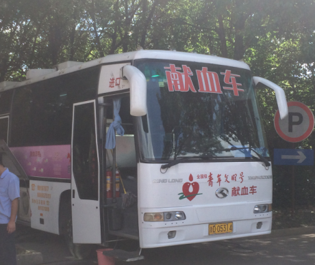 一大早,市中心血站的獻血車早早地停靠在了公司辦公大樓前的樹蔭下,一樓會議室內也早已人頭攢動,員工們正在井然有序地填寫獻血表格,依次進行著初檢。
