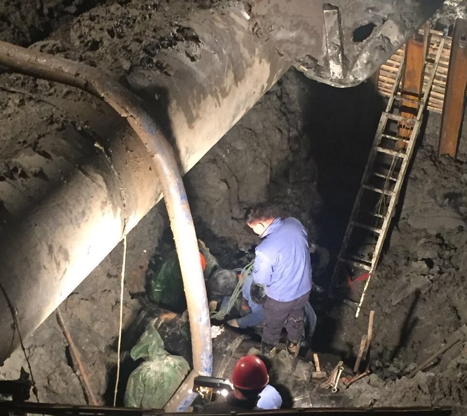 接到搶修電話后,公司相關人員立即趕至現場,并迅速組織搶修隊伍投入搶修。關閥門、排水、開挖路面……搶修工作緊張而有序地進行著。冬夜的戶外徹骨寒冷,搶修人員雖然已經凍得瑟瑟發抖,滿臉布滿疲憊,但他們始終咬牙堅持。經過17個小時的艱苦奮戰,終于在次日早上7點將漏點修復,恢復正常供水。